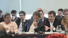 El viceministro de Hacienda, Pedro Lacoste; el secretario de Finanzas, Luis Caputo; y el subsecretario de Programación Macroeconómica, José Luis Maia, participaron de la primera reunión de comisión para debatir el proyecto de presupuesto enviado por el gobierno nacional.
