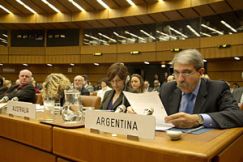 El ministro Aníbal Fernández durante su participación en el encuentro de Viena.