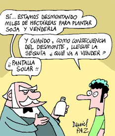“En buena parte del norte argentino se está produciendo desde hace diez años una muy fuerte expansión de la agricultura y de la ganadería –afirmó Paruelo–. Para eso es necesario desmontar el bosque original y en ese desmonte aparecen una serie de consecuencias. Los pueblos originarios y criollos son corridos y eso genera desarraigo y migración a periferias urbanas. Si no se van, quedan en una pequeña isla de monte y eso genera consecuencias serias en cuanto a las posibilidades de supervivencia, porque los recursos que utilizaban ya no están más, por el contexto socioeconómico que implica la expansión de las actividades agrícolas, entre ellas la expansión de la soja.”
