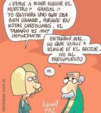 Ponderada o no, la votación directa tiene un punto crítico. La necesidad de que todos los alumnos, docentes y graduados de una universidad conozcan a los candidatos a rector puede terminar favoreciendo a los postulantes con más recursos (propios o aportados por terceros interesados en alguna recompensa posterior) para publicitarse y hacer campaña. El riesgo es proporcional al tamaño de la universidad: crece cuanto mayor es la comunidad universitaria.