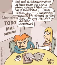 No obstante, el titular del CIN reconoció que “los salarios de los docentes y trabajadores universitarios continúan atrasados”, a pesar del recientemente anunciado incremento de entre 50 y 150 pesos para los profesores, y de 100 para los no docentes. Esa suma fija, no remunerativa ni bonificable, implicó una inversión total del Estado de 160 millones de pesos y abarcó 128.768 cargos docentes y 37.600 no docentes. Mientras que, a través del plan de infraestructura, las casas de estudios superiores podrán disponer este año de 80 millones para obras de reparación y construcción de edificios: ya se firmaron convenios con una decena de universidades por 44,8 millones, y en los próximos días se sellarán acuerdos por el resto de los fondos.