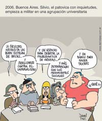 - Proyecto nacional. “La UBA sigue aislada de lo que pasa en el país”, opinó Cristian Bay, del Frente Estudiantil de Unidad, mayoría en la Facultad de Ciencias Sociales. “Queremos que haya una mayor planificación y que la universidad se inserte en la sociedad y discuta más la realidad. La universidad tiene que ser parte de un proyecto de nación. Este discurso, que está presente en muchos candidatos al rectorado, debería plasmarse en proyectos concretos para volver a la universidad más popular.” Bay, militante de la Vallese, una agrupación peronista afín al kirchnerismo, dijo que en la asamblea un candidato a votar para el rectorado sería Pablo Jacovkis, decano saliente de Exactas. Y enumeró propuestas: “Habría que modificar el sistema de becas de ayuda estudiantil. Hace falta un sistema más amplio y más vinculado con lo socioeconómico, no tanto con lo académico: porque si un estudiante tiene problemas económicos, lo más probable es que no pueda tener un buen rendimiento académico –dijo–. También hay que replantear la distribución del presupuesto de la UBA: Sociales tiene la cuarta matrícula de la universidad y no tiene un presupuesto acorde. No sólo hacen falta recursos para salarios, también se necesita más inversión en infraestructura en Sociales y en otras facultades, como Psicología”.