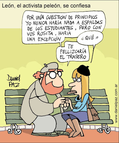 El Ministerio de Educación apoya el intento de salida consensuada. En la UBA se rumorea que, si hay rector antes de fin de año, habría también un importante refuerzo presupuestario. El problema que sigue sin resolución a la vista es la oposición de la izquierda estudiantil a una elección de rector previa a la reforma estatutaria. “Cualquier variante que surja de la actual camarilla de profesores sería reaccionaria –dijo Juan Pablo Rodríguez, copresidente de la FUBA, en diálogo con Página/12– y sería un acuerdo alcanzado a espaldas de los estudiantes y docentes. Quedó claro la semana pasada, cuando intentaron presentar las carreras ante la Coneau para avanzar en la privatización de la universidad.”