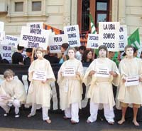 Ayer continuaron los posicionamientos políticos. Hallú se mostró junto a la “FUBA de los Estudiantes”, un desprendimiento de la federación que nuclea a agrupaciones vinculadas con Franja Morada, el socialismo del MNR e independientes: alumnos de Económicas, Farmacia, Odontología y Derecho anunciaron su apoyo al por ahora único candidato a rector. Tal reunión se ganó el rechazo de sectores kirchneristas: “Si la propuesta de consenso es llevar a Alterini y a Franja Morada al gobierno de la UBA, nos van a encontrar del otro lado”, avisó Braulio Silva, del Movimiento Universitario Sur. Por su lado, con una manifestación de estatuas vivientes, marcaron su postura otras agrupaciones de centroizquierda y kirchneristas. “Impedir la convocatoria a asamblea es inmovilizar la UBA”, fue el lema que reunió frente al rectorado a militantes del QRS, Megafón, La Vertiente, IURE, Movimiento Evita y otros, quienes promueven la asamblea “para avanzar en las transformaciones de la universidad”.