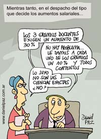 Pese a los buenos pronósticos, bastaron dos reuniones de la mesa negociadora que integran docentes, rectores y la Secretaría de Políticas Universitarias para que todo se empantanara. Con diferentes posturas, las tres federaciones nacionales de docentes universitarios reclaman un aumento de al menos el 30 por ciento. El Ministerio de Educación, en cambio, ha supeditado cualquier oferta a los fondos que el Gobierno decida utilizar para mejorar los salarios en la administración pública. Decisión que aún no ha sido tomada.