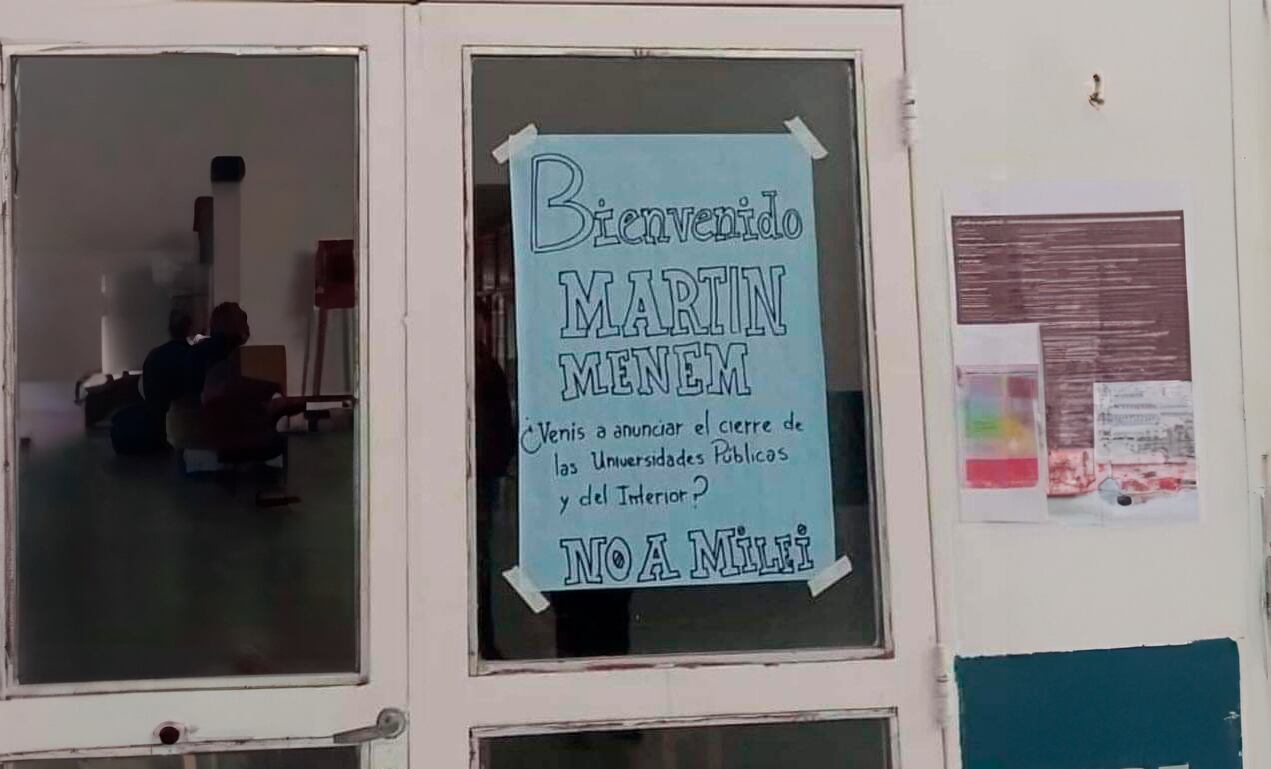 Menem fue a la Universidad y lo recibieron con carteles en contra de las propuestas libertarias