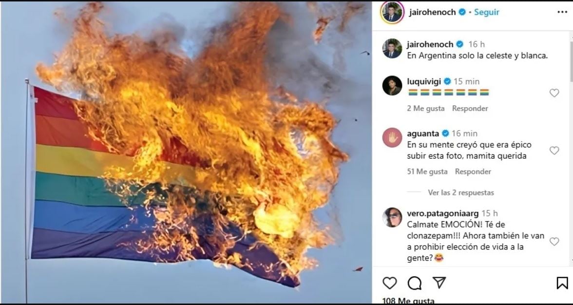 En noviembre del año pasado  Jairo Henoch Guzmán, presidente de LLA en Santa Cruz, publicó una foto de una bandera lgbti en llamas