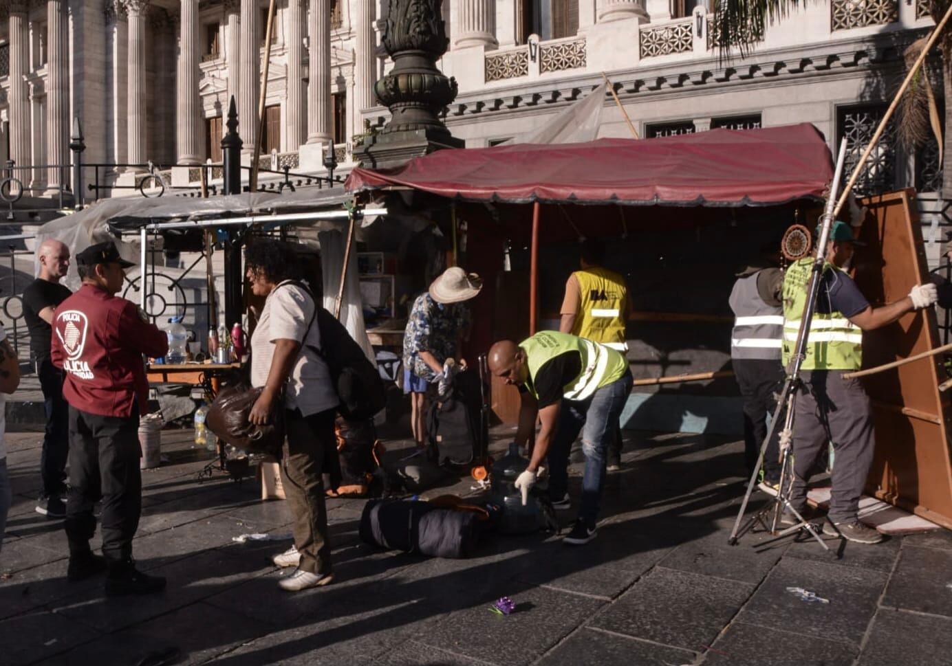 El procedimiento fue realizado esta mañana por efectivos de la Policía de la Ciudad con el apoyo de personal de la Agencia Gubernamental de Control y de Higiene Urbana. El grueso del grupo ya había regresado a Jujuy.