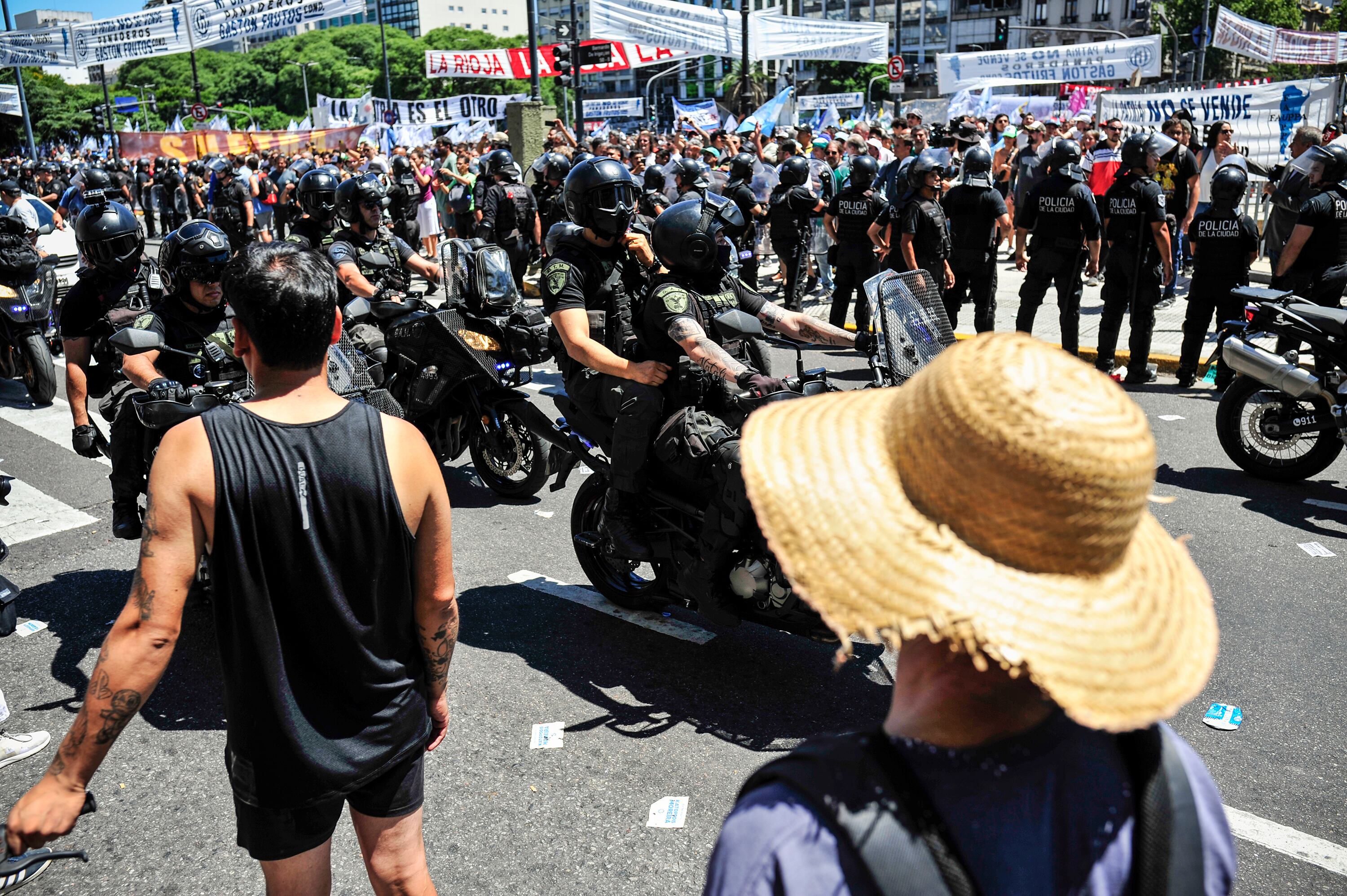 La marcha convocada por la Unidad Piquetera fue custodiada por las fuerzas de seguridad.