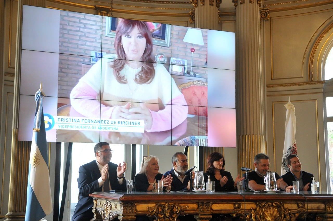 La vicepresidenta Cristina Kirchner, el expresidente uruguayo José “Pepe” Mujica, Taty Almeida y Estela de Carlotto enviaron sus saludos virtuales. La ministra de Trabajo “Kelly” Olmos, Héctor Daer por la CGT, el vicejefe del Gabinete de Ministros Juan Manuel Olmos, la legisladora M.C. Silvia Gottero y el senador Mariano Recalde acompañaron al secretario general del Suterh –y coordinador del Grupo Octubre--, Víctor Santa María.